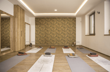 Poté se všichni sejdeme na jógových podložkách v sále, kde lektroka Míša zahajuje svoji praxi. Sobotní lekce krásně plynou od pranayamy, jogového dýchání na začátku, přes pozdravy slunce až po ásány, které vám uvolní ztuhlá záda, zahřejí tělo a po lekci se cítíte lehčí, flexibilnější a plní nové energie.